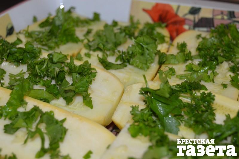 Петрушку помойте и мелко порубите. Посыпьте зеленью кабачки.