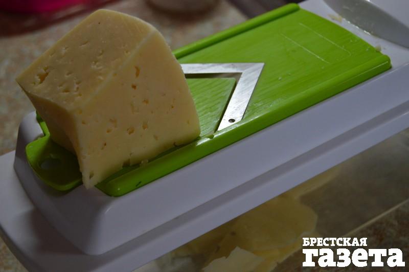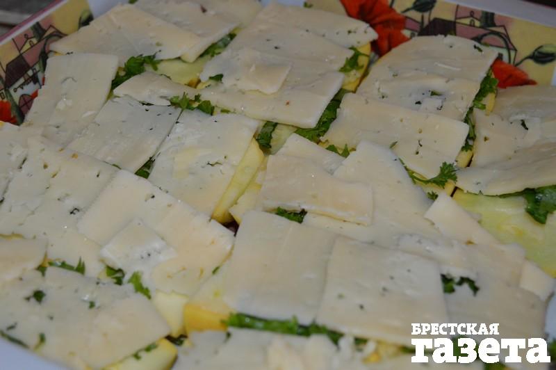 Сыр нарежьте тонкими ломтиками и положите поверх петрушки.