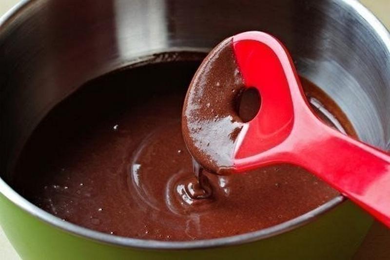 Готовим: Соедините муку, соду, какао, сахар и соль. Добавьте растительное масло, ваниль и молоко и хорошо перемешайте.