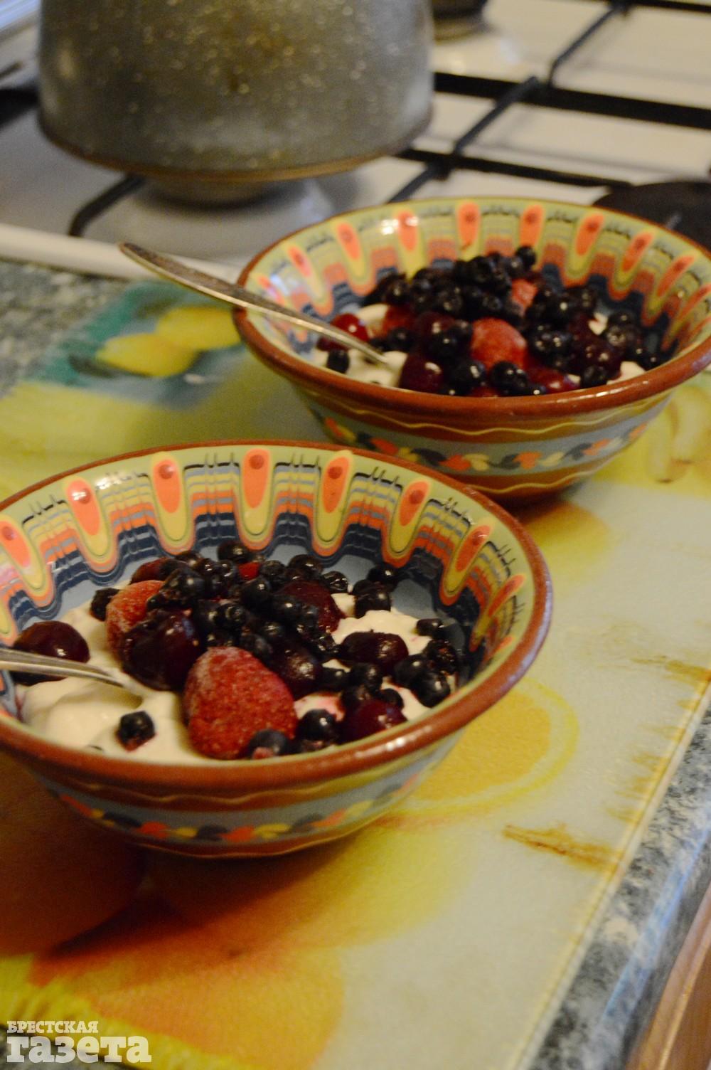 Их можно заранее разморозить, а можно положить сразу из морозильной камеры. Тогда получится приятный десерт в жаркую погоду.