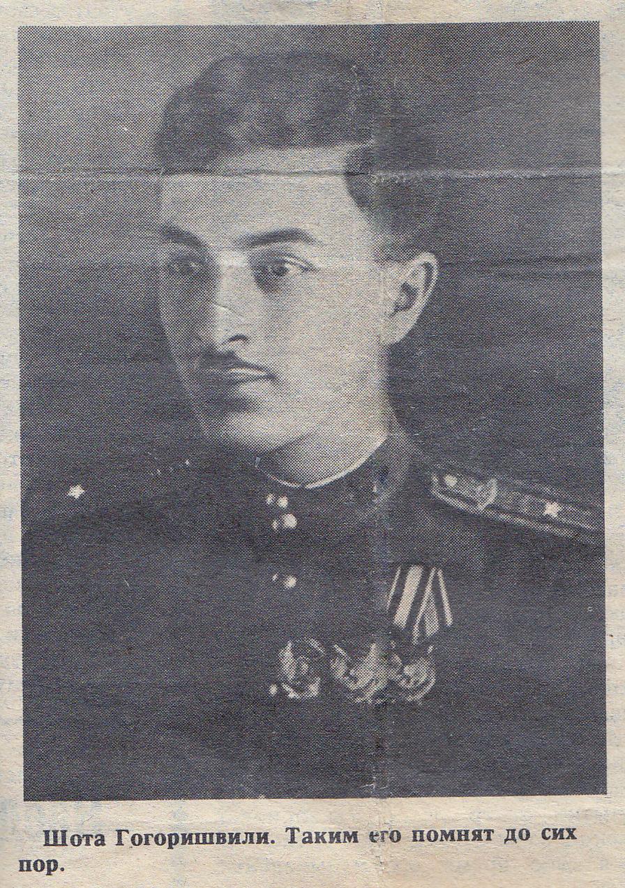 В Тбилиси на старом Кукийском кладбище есть могила с надписью: «В августе 1944 года под Варшавой сражался и погиб гвардии майор Шота Гогоришвили». Рядом с захоронением стоит тяжелое самоходное орудие, которое местные жители называют «танком». На броне — гранитная плита с фотографией молодого человека с грустными глазами. Когда Шота погиб, ему было всего 22 года.