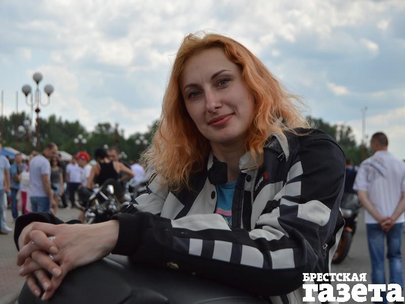 — Я из Минска. На брестский байк-фестиваль приехала впервые, но вообще в таких мероприятиях участвую далеко не первый раз. В России была практически на всех слетах. Мотокультурой увлекаюсь уже лет пять, наверное. У меня нет собственного мотоцикла, я пассажир. О своем не мечтаю, у меня все есть. Катаюсь уже давно, и мне нравится. Байкер — это стиль жизни. Они состоят в клубах, у них свои движухи. Я не байкер. Я мотоциклист, катаюсь в свое удовольствие.