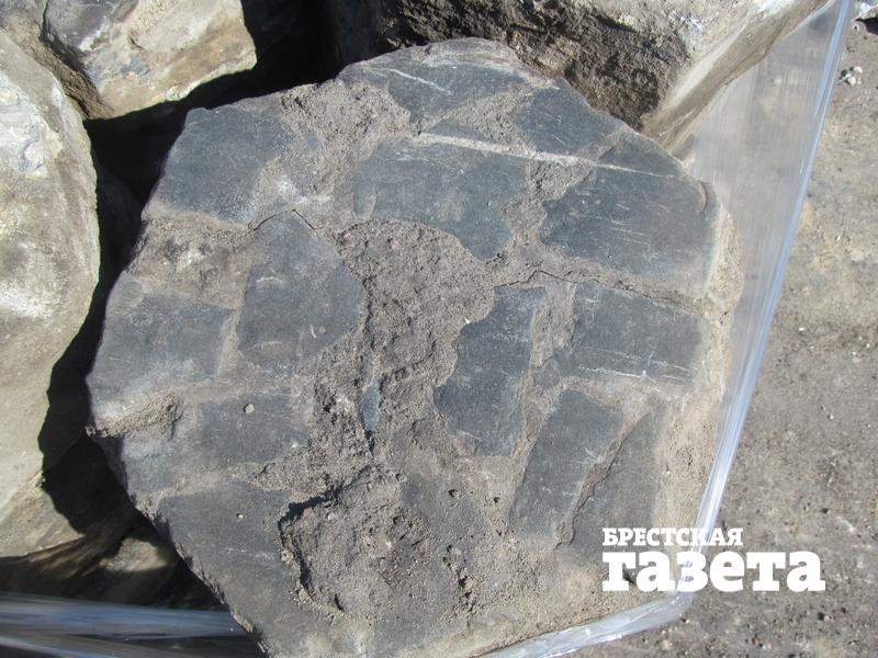 Однако, несмотря на старания дорожников, «добыть» много трилинки не получается. Она довольно долго пролежала под слоем асфальта. За это время раствор, скрепляющий ее элементы из натурального камня, потерял свои связующие свойства. Поэтому часть плитки не выдерживает процедуру извлечения из земли и попросту разваливается.