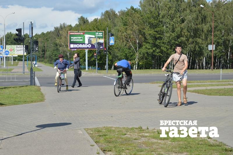 Кроме того, на главной улице города на пешеходных переходах есть разметка, позволяющая велосипедистам не спешиваться. Кстати, в ГАИ «БГ» рассказали, что такая разметка со временем появится и на других велодорожках города. Специальное место для езды на велосипедах есть и на Кобринском мосту.