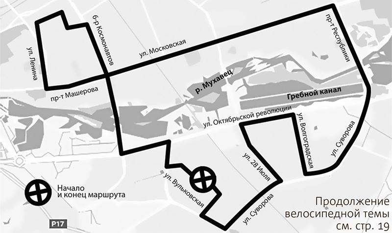 Чтобы почувствовать на себе все прелести и недостатки велосипедной езды по городу, корреспондент «БГ» сделала внушительный круг длиной 21,76 км, по данным мобильного приложения Road Bike. Маршрут получился следующий: улицы Вульковская — Рябиновая — Сябровская — Суворова — 28 Июля — Октябрьской революции — Волгоградская — снова Суворова — проспект Республики — Гузнянский мост — улица Московская — Кобринский мост — проспект Машерова — бульвар Космонавтов — улица Гоголя — Советская — Пушкинская — Ленина — снова проспект Машерова — бульвар Шевченко — мост — Варшавское шоссе — улица Краснознаменная — Колесника — и снова Вульковская.