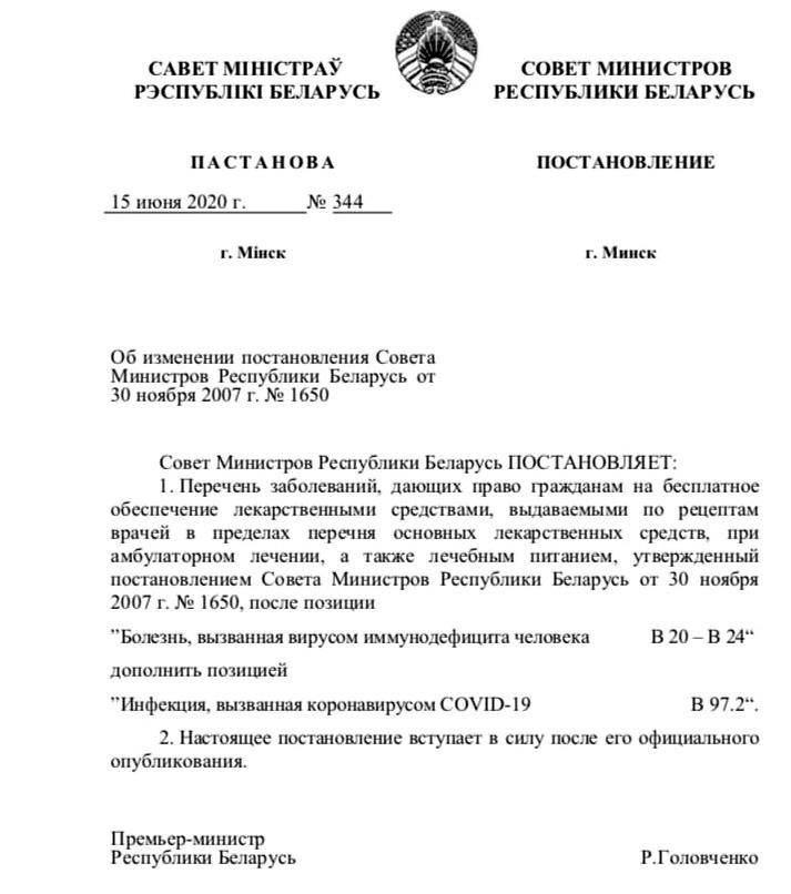 Постановление №344 Совмина от 15 июня 2020 года, где говорится о такой возможности, на момент подписания не соответствовало всем остальным нормативным правовым актам, которые регламентируют бесплатное и льготное обеспечение лекарственными средствами. И на внесение изменений в эти документы ушло некоторое время.