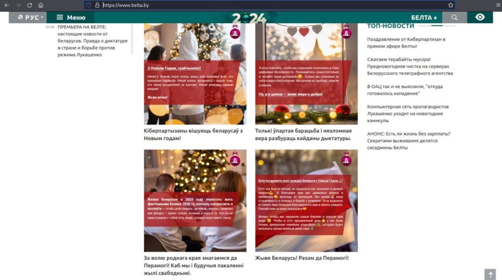 Главным предновогодним событием стал взлом «Киберпартизанами» компьютерной сети государственного информагентства БЕЛТА. Около 10 минут сайт по-настоящему радовал глаз.