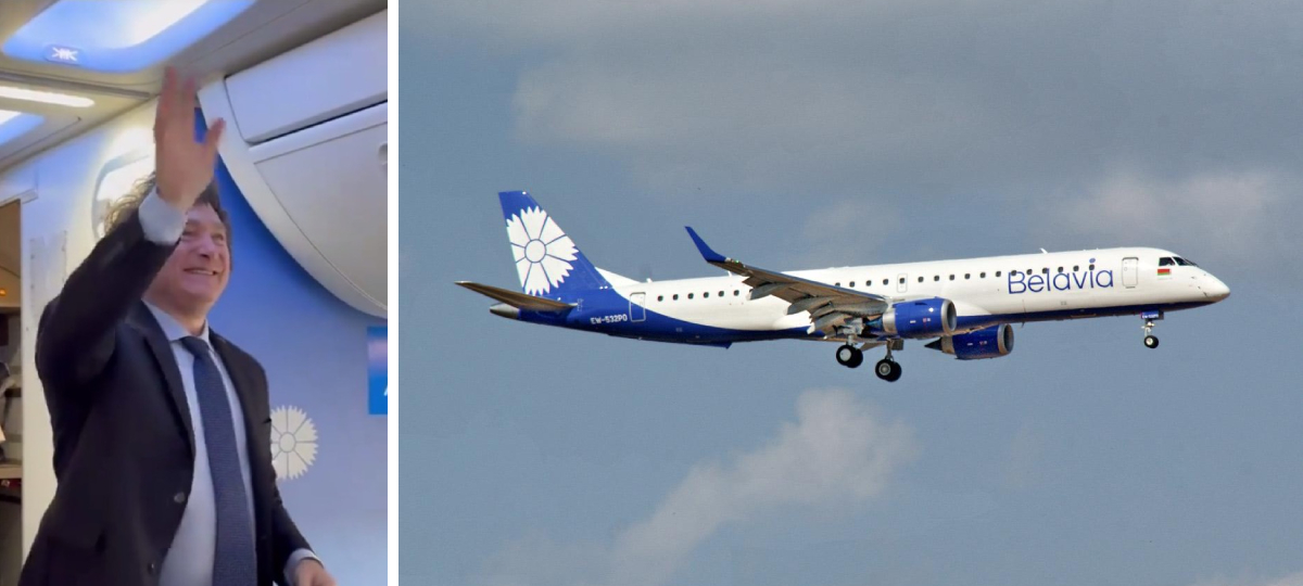 В соцсетях появились видео, как новый президент Аргентины Хавьер Милей летит обычным рейсом местной авиакомпании. Он неоднократно заявлял о своем намерении снизить государственные траты. Необычное в его поездке — самолет, в салоне которого видны васильки, символика беларуского перевозчика «Белавиа». Оказалось, этот самолет предназначался для «Белавиа», но не был передан из-за санкций, и в итоге попал в Аргентину. Его перекрасили, но в салоне остались некоторые элементы, присущие беларуской авиакомпании.