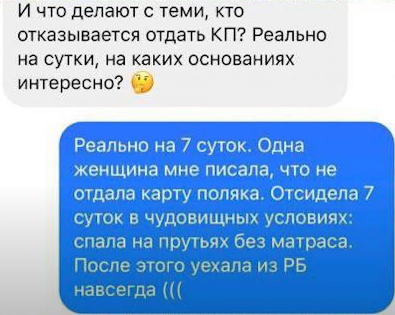 Мы не нашли в этих чатах историй беларусов про то, как у них забирали карты поляка или угрожали «сутками». В основном беларусы в чатах только спрашивали об этом: