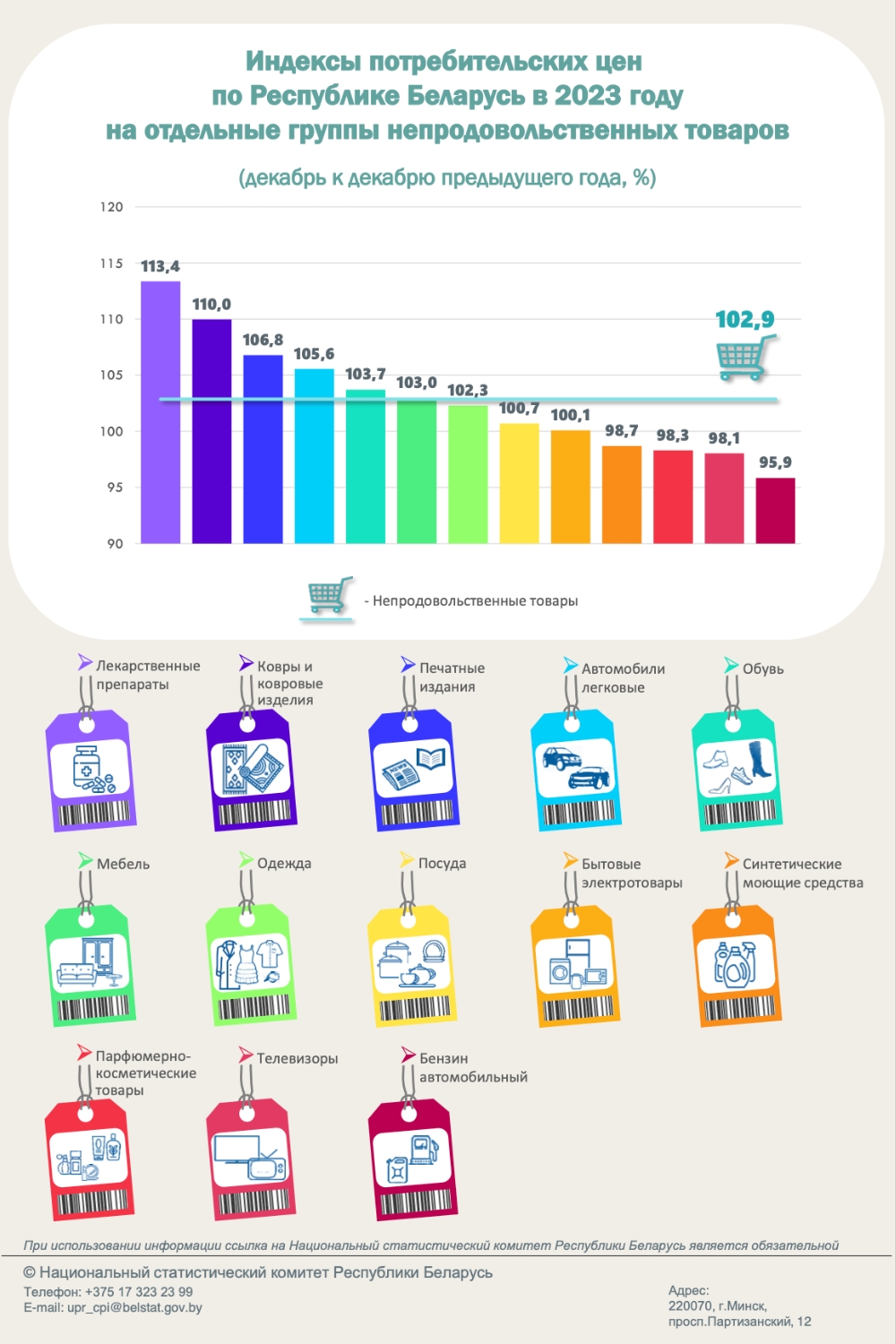 Из непродовольственных товаров цены выросли на лекарственные препараты (13,4%), а также ковры и ковровые изделия (на 10,0%). Прибавили в цене печатные издания (читай — госпропаганда, так как свободной прессы в лукашенковской Беларуси не осталось — ред.), легковые автомобили, обувь.