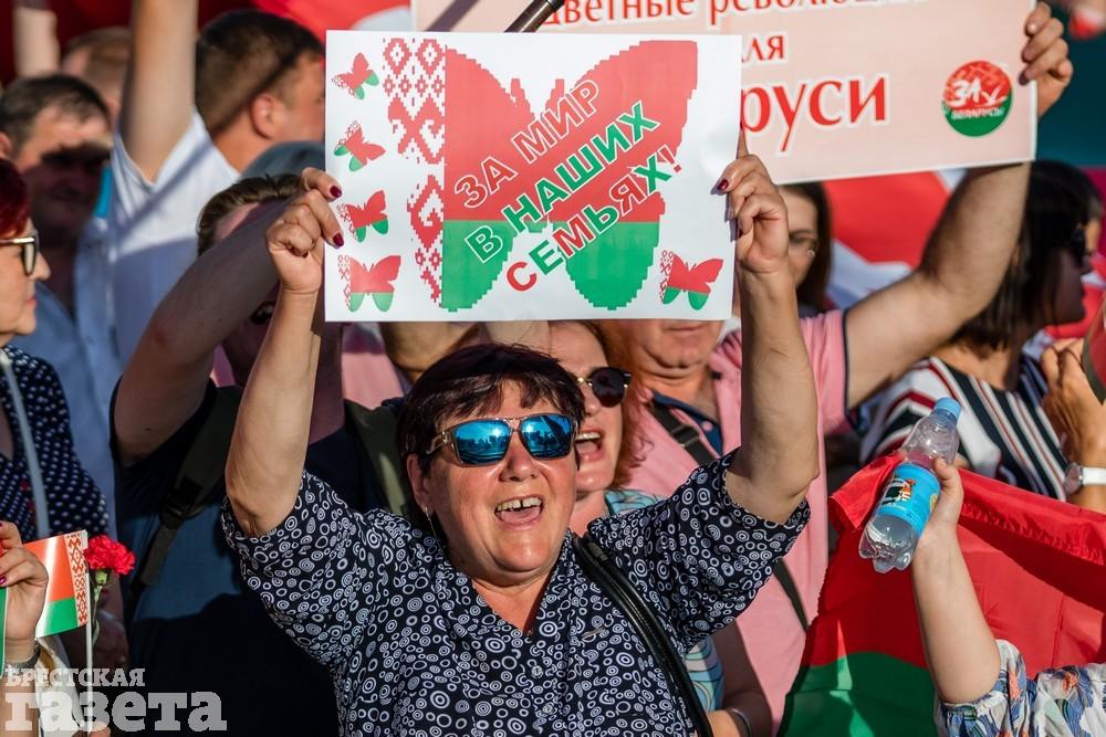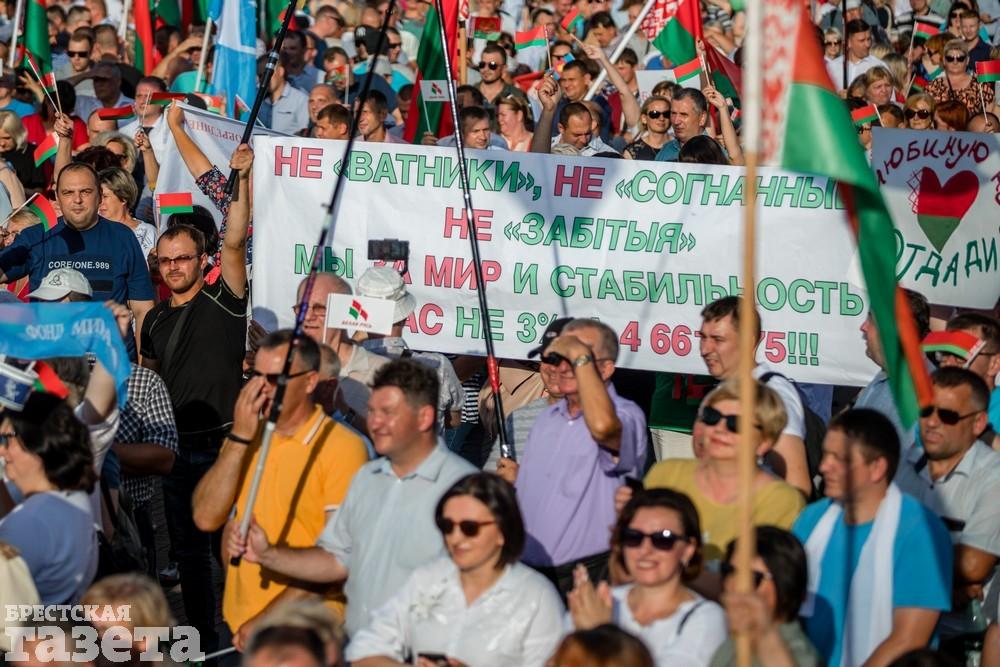 Афиша мероприятия была обозначена лозунгами «Не дадим развалить страну» и «Мы едины!», а также хештегами #ЗаБатьку, #ЗаБеларусь, #ЛюбимуюНеОтдадим и #БрестЗаБеларусь.