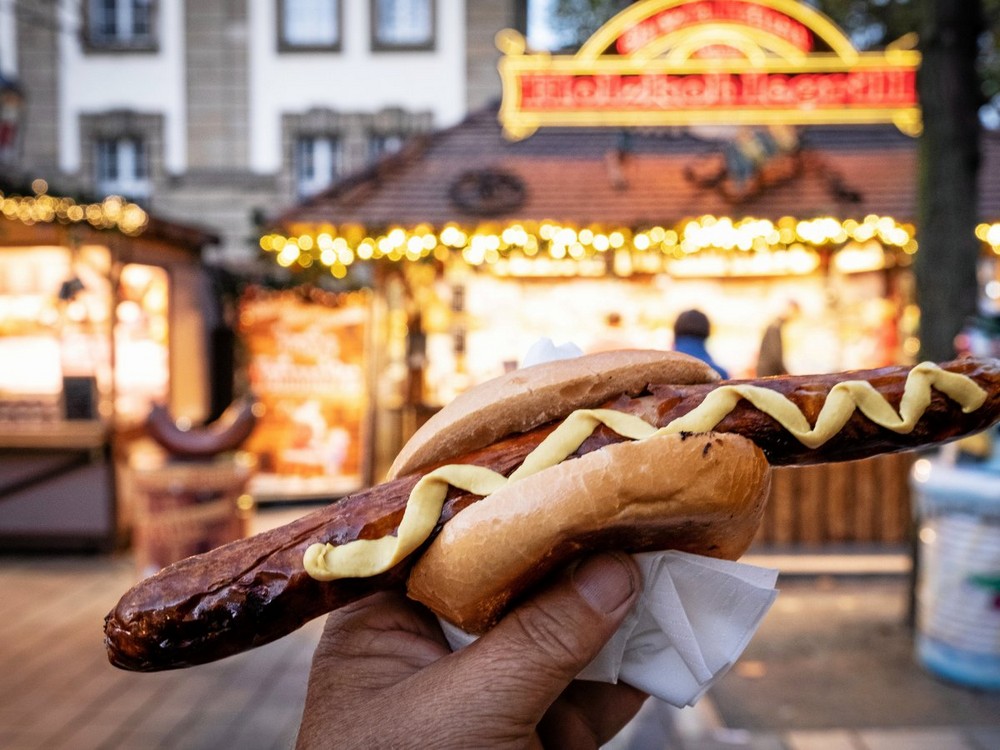 Немцы любят колбасы и умеют их делать, поэтому неудивительно, что это один из основных продуктов рождественского базара. В зависимости от места отличается и выбор, чаще в пользу местных продуктов. Дым, идущий от гриля, всегда покажет, где готовят сосиски. Гурманы оценят Bratwurst, Krakauer (пряные) и Käsewurst (фаршированные сыром). Особыми деликатесами считаются колбаски нюрнбергские и тюрингские.