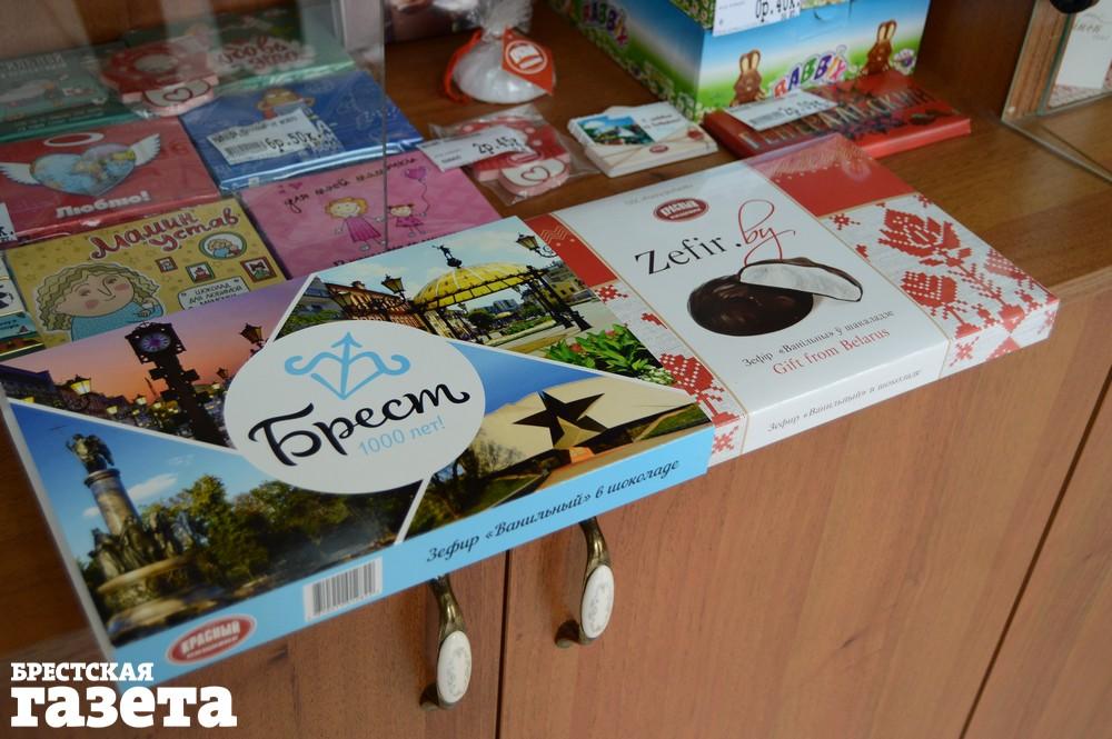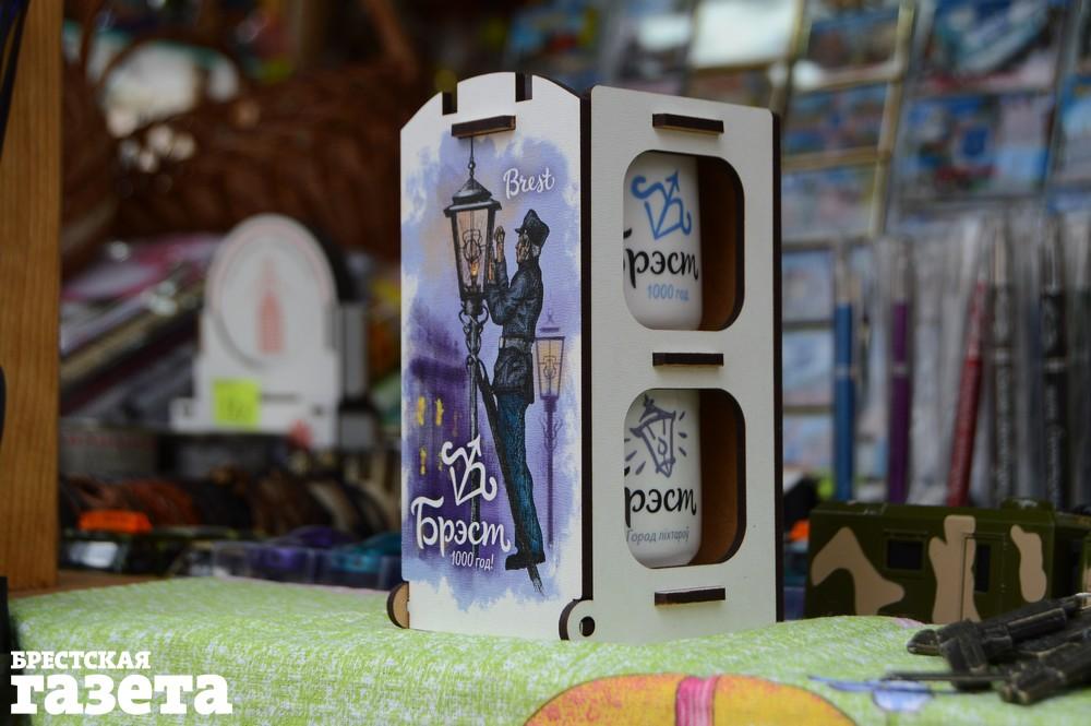 В различных магазинах города можно найти и другую продукцию, связанную с Брестом. Есть различные майки, рюкзаки, экосумки, кружки и подставки под них, магниты, кожаные изделия, сладости и другие сувениры с символикой города.