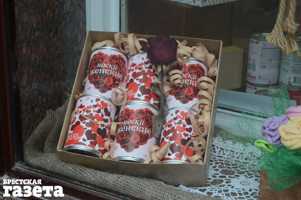 Носки в такой необычной упаковке выпускает Брестский чулочный комбинат. К праздникам обычно появляются лимитированные серии с тематическим дизайном: для женщин, для влюбленных, для защитников и так далее. А в последнее время компания пошла дальше и стала выпускать носки в наборе с презервативами и даже носки, которые сами свернуты как презерватив.