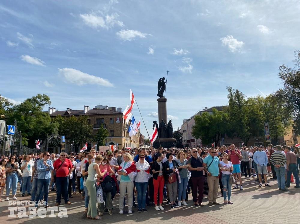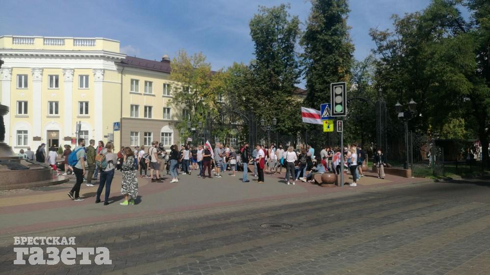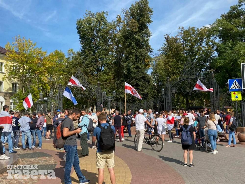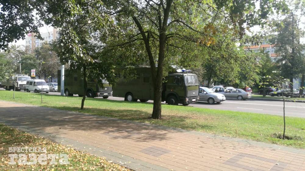 За несколько дней до воскресенья телеграм-каналы сообщали, что 13 сентября по всей Беларуси пройдут протестные акции под названием «Марш героев». В центре Бреста перед началом акции по традиции можно было увидеть автозаки.
