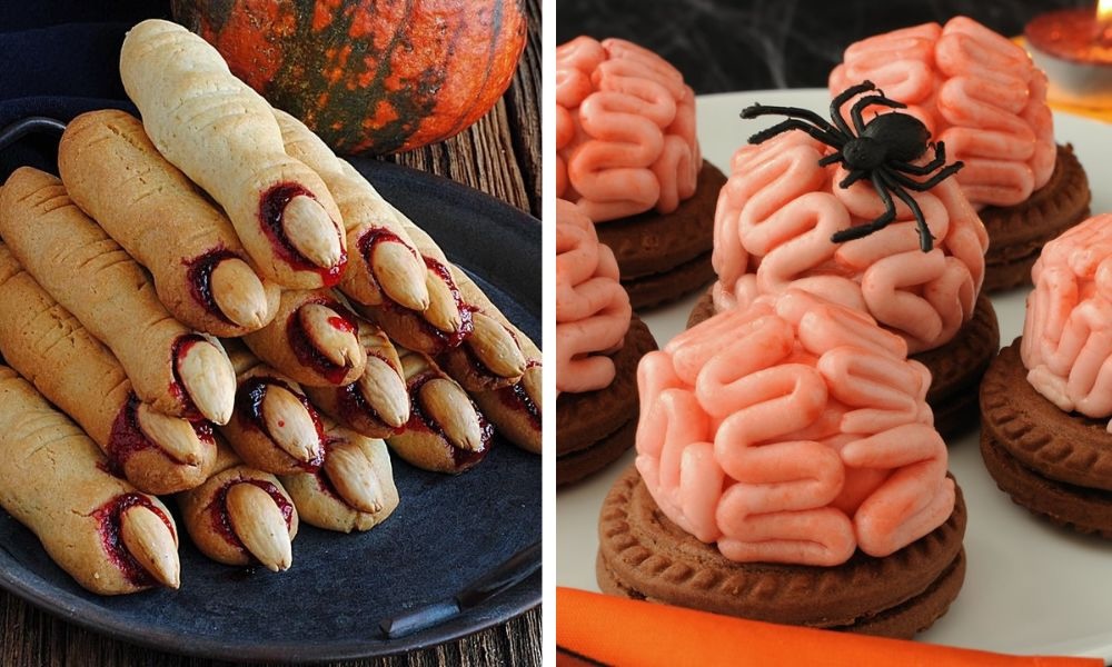 Печенье «Ведьмины пальчики» и «Мозги». Иллюстративное фотоБутерброды с авокадо в виде нечисти и сладкие угощения в виде надгробий. Иллюстративное фото