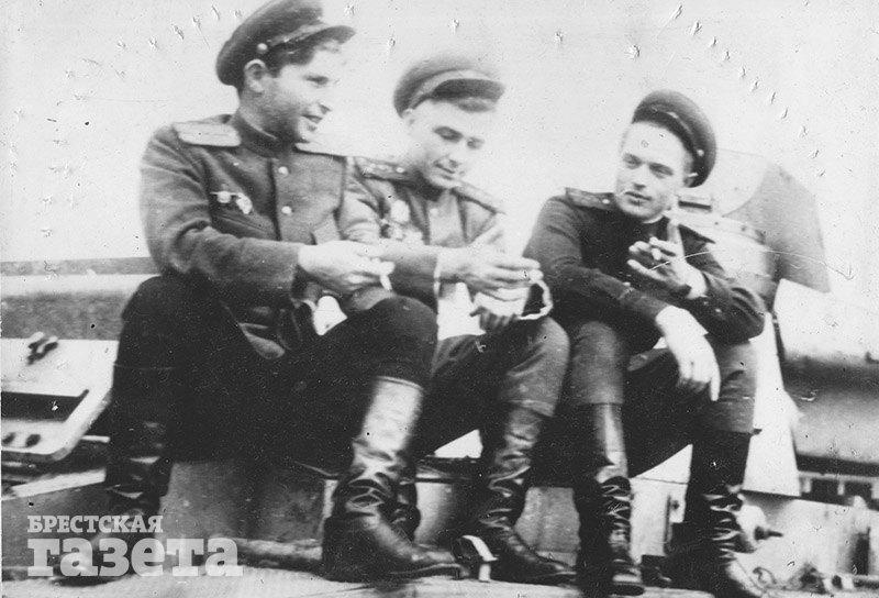 — В Берлине на трофейном танке мы сидим втроем (справа налево): командир батареи Григорий Лещук, командир взвода Петр Прасол и я, начальник штаба дивизиона 370-го артиллерийского полка 230-й стрелковой Донецко-Берлинской дивизии. Идет май 1945 года. Мы говорим о Победе, радуемся. Победу мы праздновали о-о-чень долгое время. Была прямо какая-то эйфория. Помню, даже издан был приказ после того, как группа наших солдат на американском «Виллисе» отправилась гулять в Париж. Маршал Жуков, командовавший группой советских оккупационных войск, принял меры: офицеров, с боями дошедших до Берлина, стали менять на присланных из Союза. Ведь в войну — один порядок, а в мирное время — совершенно иной.