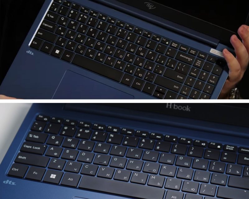 «Все то же самое по характеристикам. Это Intel Core i3, 256 [гигабайт] SSD, восемь гигабайт оперативы, — рассказал об itel Spirit 2 блогер, а затем достал из коробки китайский ноутбук и сравнил его внешний вид с H-book. — Один в один. Понятное дело, что нет замечательной буквы Н. Тут бренд itel. С точки зрения задней крышки, разъемов, всех остальных элементов — это тот же самый компьютер. И собран он точно так же. У него та же клавиатура, та же наклейка на корпусе, та же надпись DTS [так обозначается семейство систем цифровой многоканальной звукозаписи, созданное компанией Digital Theater System], о которой мы с вами говорили в беларуском «макбуке».