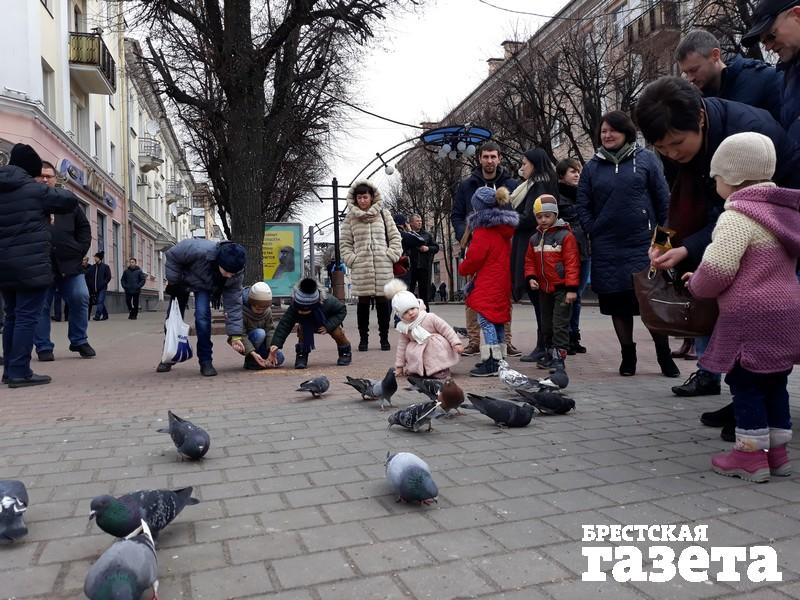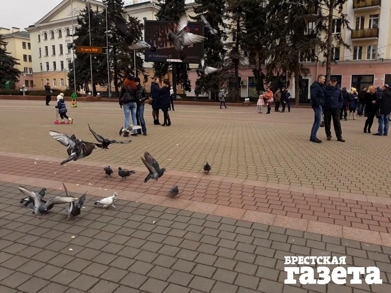 В воскресенье 11 марта в Бресте более 100 человек вышли на площадь Ленина, чтобы покормить голубей. Уже третье воскресенье подряд брестчане выходят на главную площадь города, чтобы таким образом донести свой протест против появления под Брестом аккумуляторного завода «АйПауэр» до местных властей.