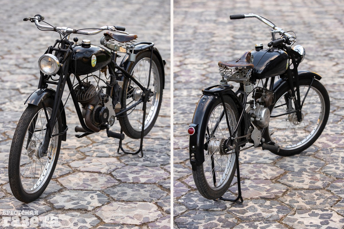 — Стал я решать, из чего мне сделать мотоцикл довоенного периода. Вспомнил, что в гараже на стене висит старый, до 1935 года, мотор фирмы SACHS, 98 см³. Мне его пацаны принесли лет 20 назад. Даром. Взял я этот мотор за основу и начал делать. Переднюю оригинальную вилку от «DKW RT 1002 мне отдал мой друг, он же дал бак. Позже из Германии привез сидение. Раму я сделал сам. Моя мысль была скопировать немецкий «Wanderer».