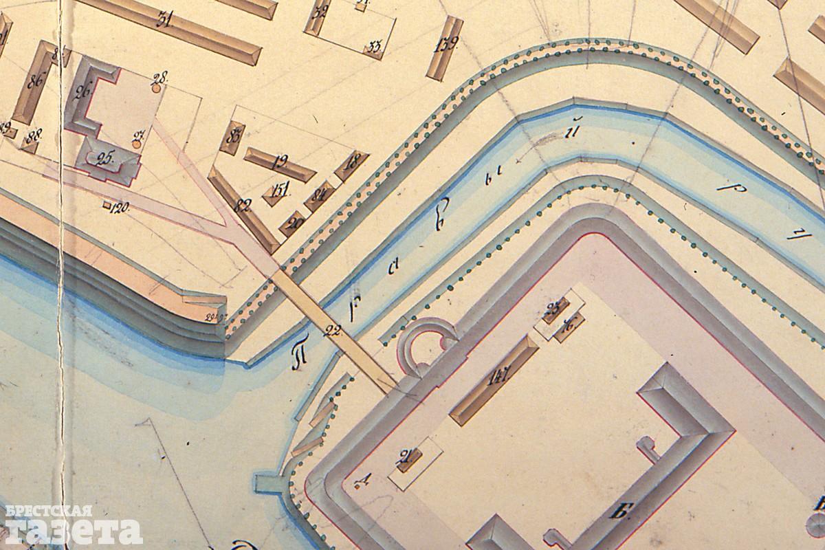 Река Мухавец опоясывает Цитадель Брестской крепости – сердце форпоста — с двух сторон, создавая дополнительную водную преграду. Мосты соединяли Цитадель с другими укреплениями. В XIX веке путепровод через правый рукав реки Мухавец в направлении Бригитского монастыря был деревянным. Но в начале XX века его перестроили и он стал железобетонным с вертикально подъемной пролетной частью. То есть мост поднимался вверх, а не разводился в стороны.