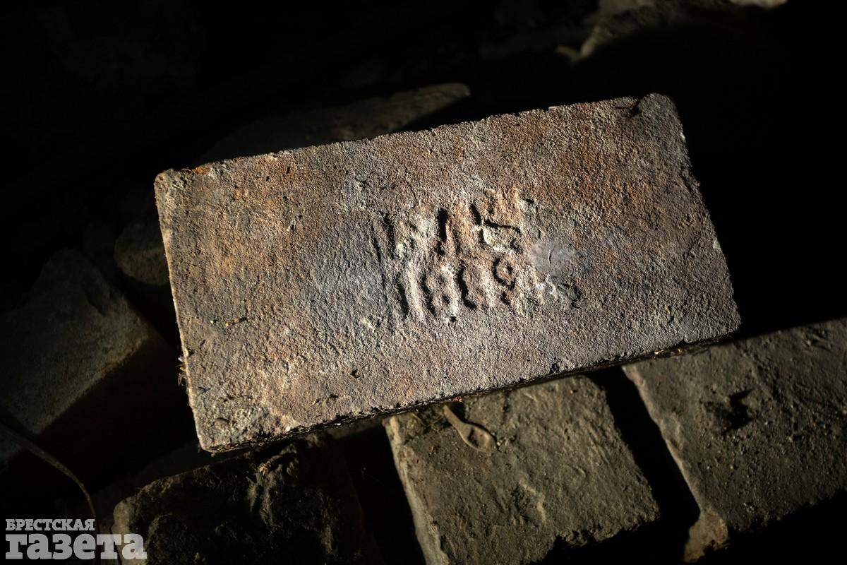 В местах кладки наш гид показал кирпичи с клеймами Брест-Литовского крепостного кирпичного завода и датами 1888 и 1889 года.