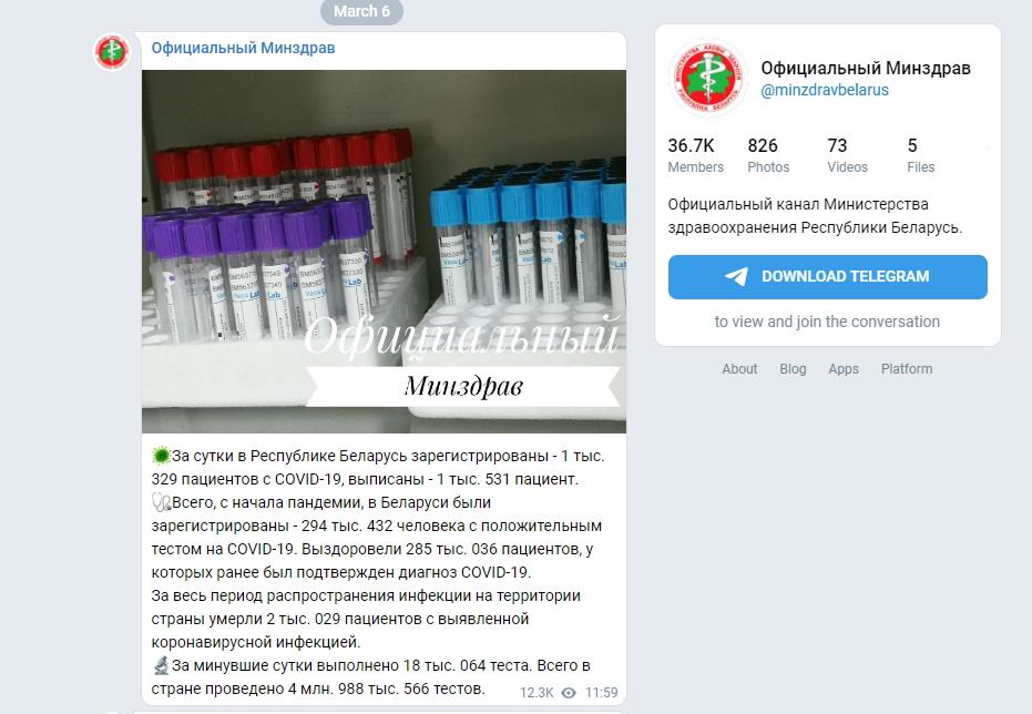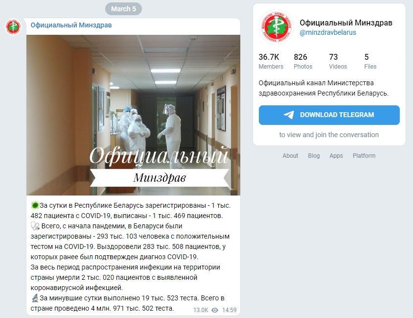 Похожая ситуация произошла 6 марта: за сутки до этого Минздрав сообщил, что общее число выздоровевших и выписанных составляет 283 508 человек.