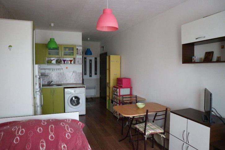 Или вот такую студию продают за 9,9 тысяч евро. Она находится в жилом комплексе в 3 км от курорта Солнечный Берег. А ее общая площадь – 31 кв. м. Квартира состоит из гостиной, ванной комнаты, но, правда, без балкона. В стоимость также входит вся мебель и оборудованию.