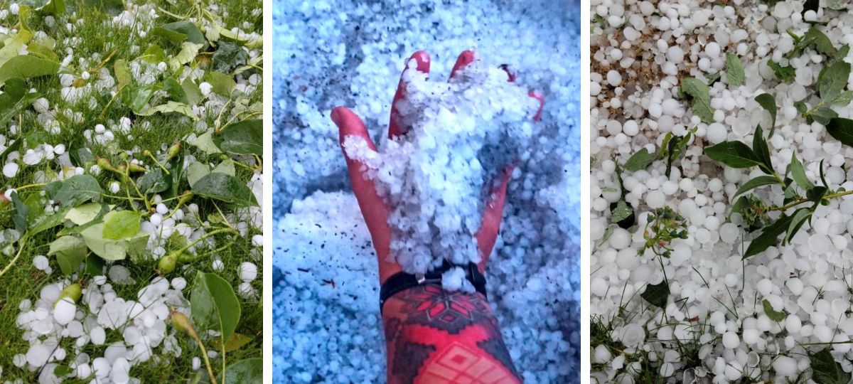 «Оцениваем ущерб… Ледышки с грушами, ягодами и листопадом», — написали в социальной сети местной газеты.