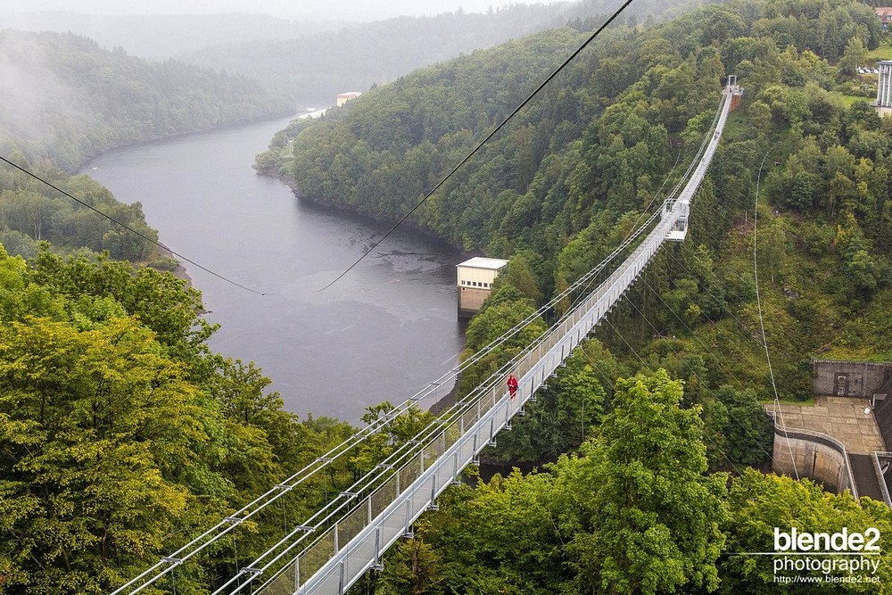 Мост находится на 100-метровой высоте над водой около плотины Раппбоде — самой высокой плотины в Германии. Кабели моста с обеих сторон врезаны в скальную породу. Они натянуты с усилием в 947 тонн, поэтому одновременно на подвесной конструкции могут находиться около 210 человек.