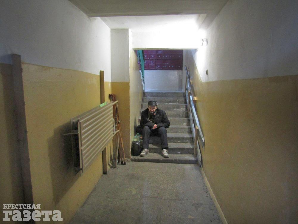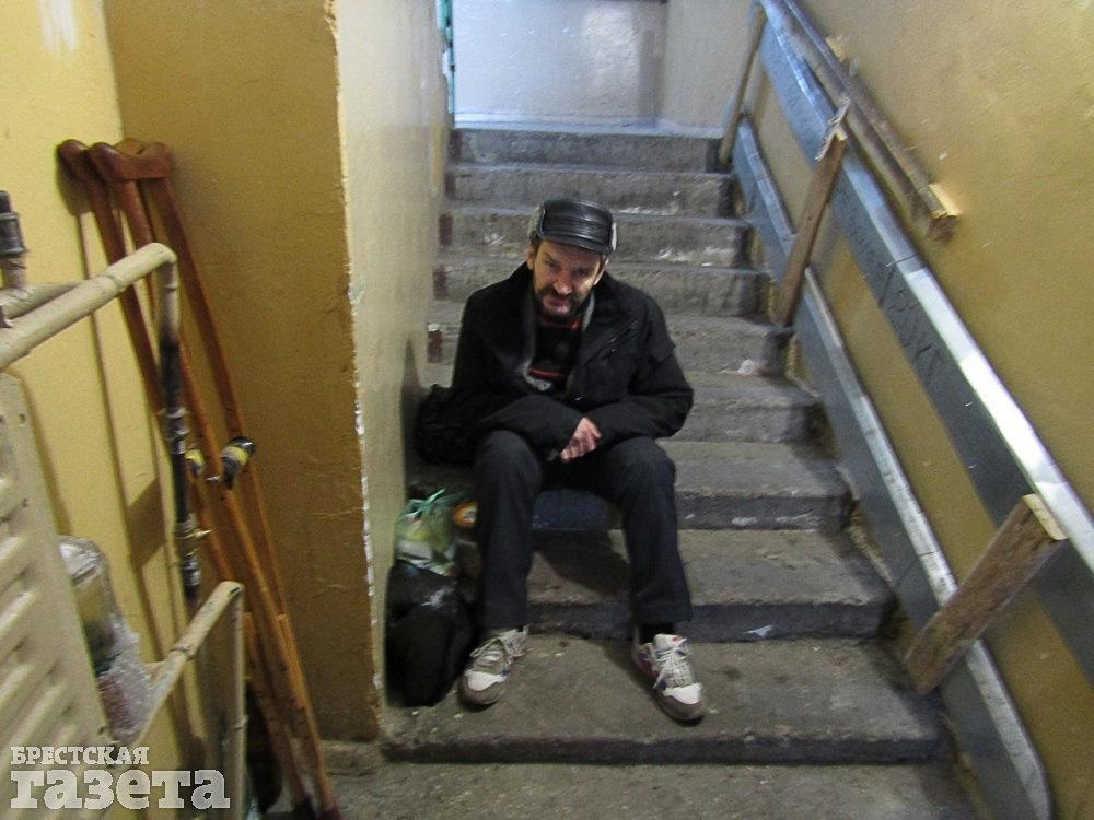 Всех, кто заходит в подъезд одного из домов на бульваре Космонавтов, на первом же лестничном пролете встречает мужчина. И это не консьерж и не швейцар. Вячеслав Ляшук здесь живет. Не в квартире этого подъезда, а именно на лестнице, которая ведет к квартирам. Спит, по его словам, прямо на бетонных ступеньках. Постель ему заменяет старенькое покрывало.