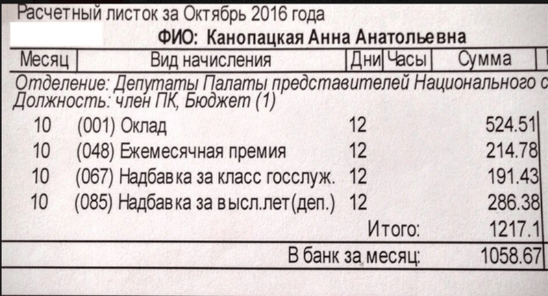 Активистка Объединенной гражданской партии (ОГП) и депутат Палаты представителей Национального собрания Анна Канопацкая не носит депутатский значок, убрала из рабочего кабинета портрет президента и первая обнародовала свою нынешнюю зарплату. В воскресенье 4 декабря Канопацкая вместе с коллегами по партии Анатолием Лебедько и Антониной Ковалевой побывала в Бресте и участвовала в пресс-конференции, которая прошла в редакции «БГ».