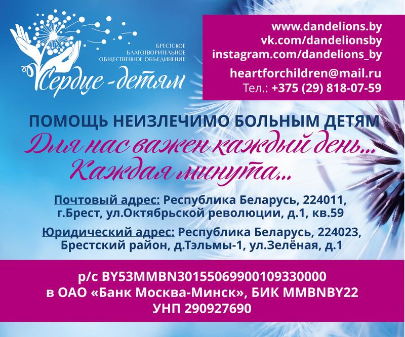 Объединение «Сердце — детям» e-mail: heartforchildren@mail.ru, тел. (+37529) 818-07-59