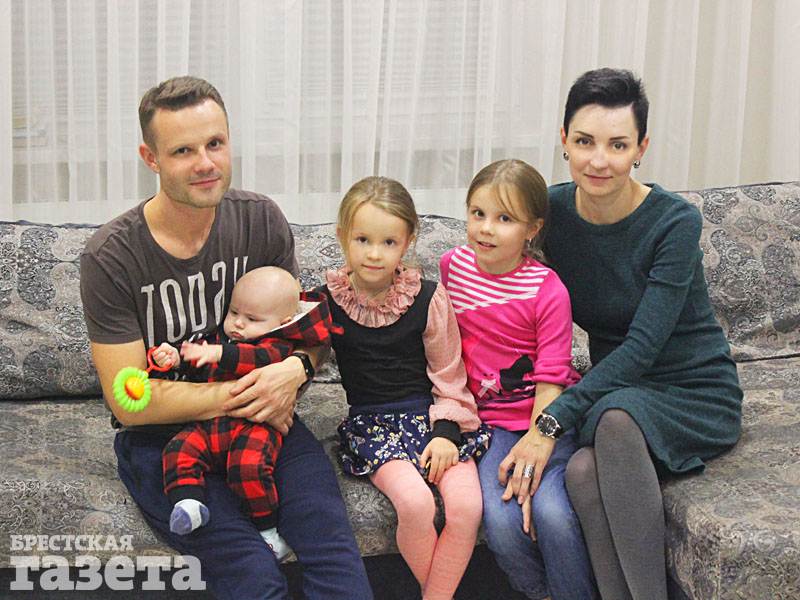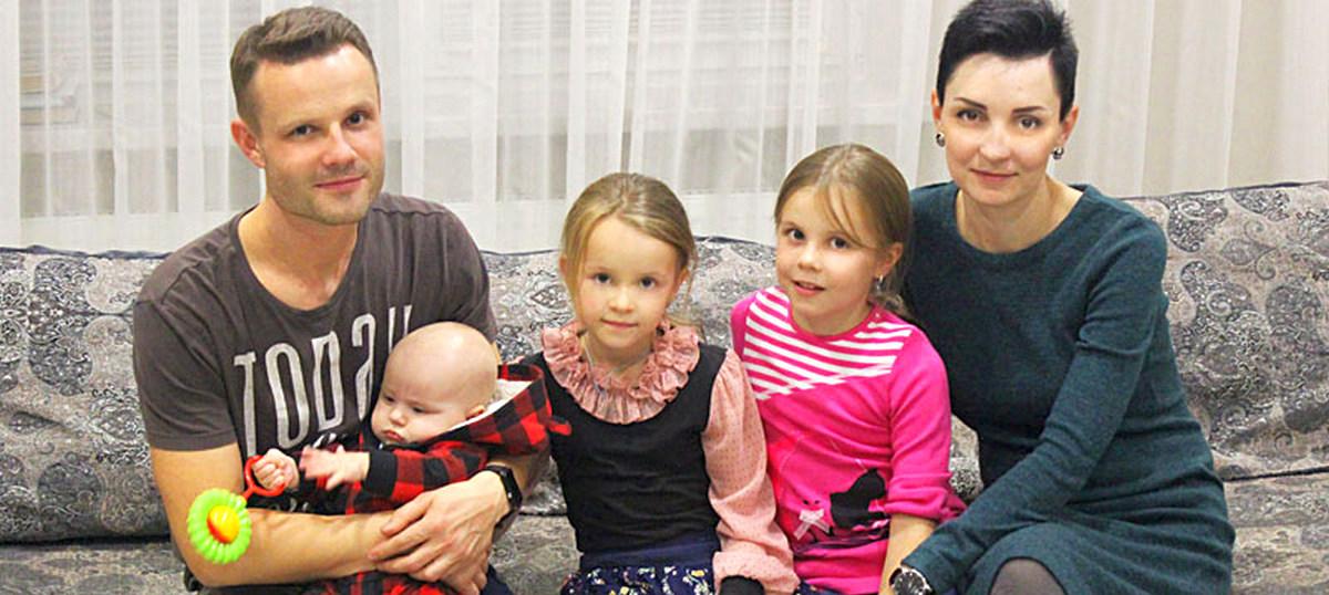 Дверь открывает миниатюрная молодая женщина с полугодовалым малышом на руках, приглашает в дом. В просторной и минималистичной гостиной на диване в окружении книг устроились две девочки — Варя и Даша. Тут же появляется глава семьи Денис и умело подхватывает маленького Ярослава на руки, освобождая маму для беседы.