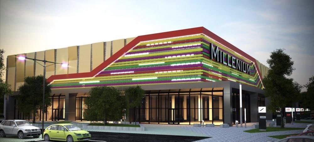 На этом месте планировался торговый центр на 16 000 кв. м. с красивым названием MILLENIUM. На сегодня — это участок 2,7 га со старым каркасом здания, который постепенно реконструируется.