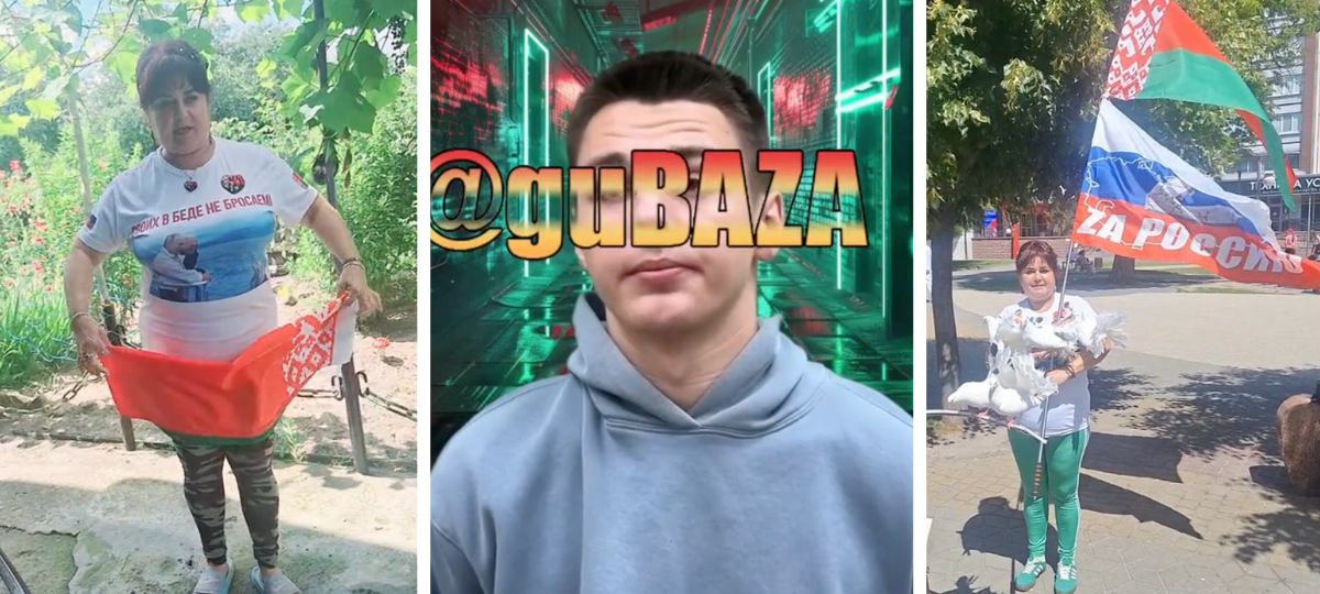 Во-первых, автор видео четко говорит, что проживает в Каменце, как и Садия Гаранина. Во-вторых, флаг «Za Poccию» фигурировал во многих ее роликах в TikTok. Хотя мы допускаем, что он может «гастролировать» и с другими Z-патриотами.