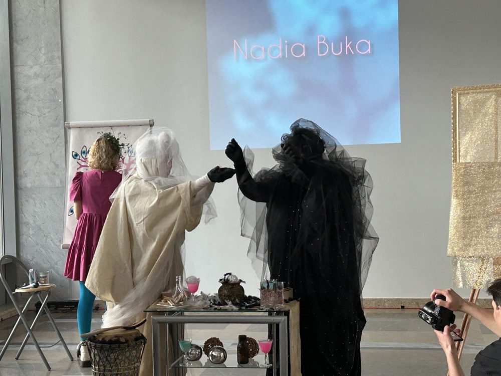 Наведвальнікі выставы змаглі не толькі асабіста пазнаёміцца з мастачкай, але і з фантастычным героем, якога Надзя не толькі намалявала, але таксама напісала пра яго кнігі. Пад час адкрыцця адбыўся перформанс, у якім аўтары паказалі гісторыю нараджэння фантастычнага героя мастачкі – Пігласа.