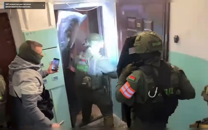 Сначала в сюжете показали задержание Александра Войтешика в Барановичах. Силовики вломились к нему в квартиру и приказали лечь на пол. После на видео, снятом силовиками, он был уже в наручниках.