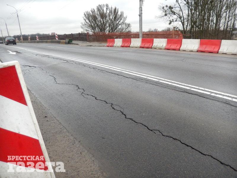 Фотофакт. Кобринский мост в Бресте треснул и просел, власти просят не беспокоиться
