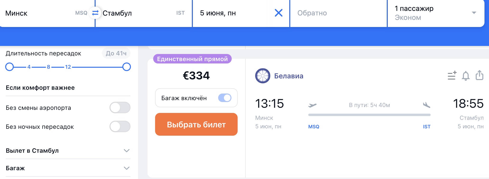 Первое, что приходит на ум – это война и санкции. Если раньше полет из Минска в Стамбул длился, как и из Варшавы, примерно 3 часа, то сегодня время в пути из беларуской столицы занимает почти 6 часов. Соответственно, расход топлива на облет зоны боевых действий дает право авиаперевозчику-монополисту увеличить ценник.