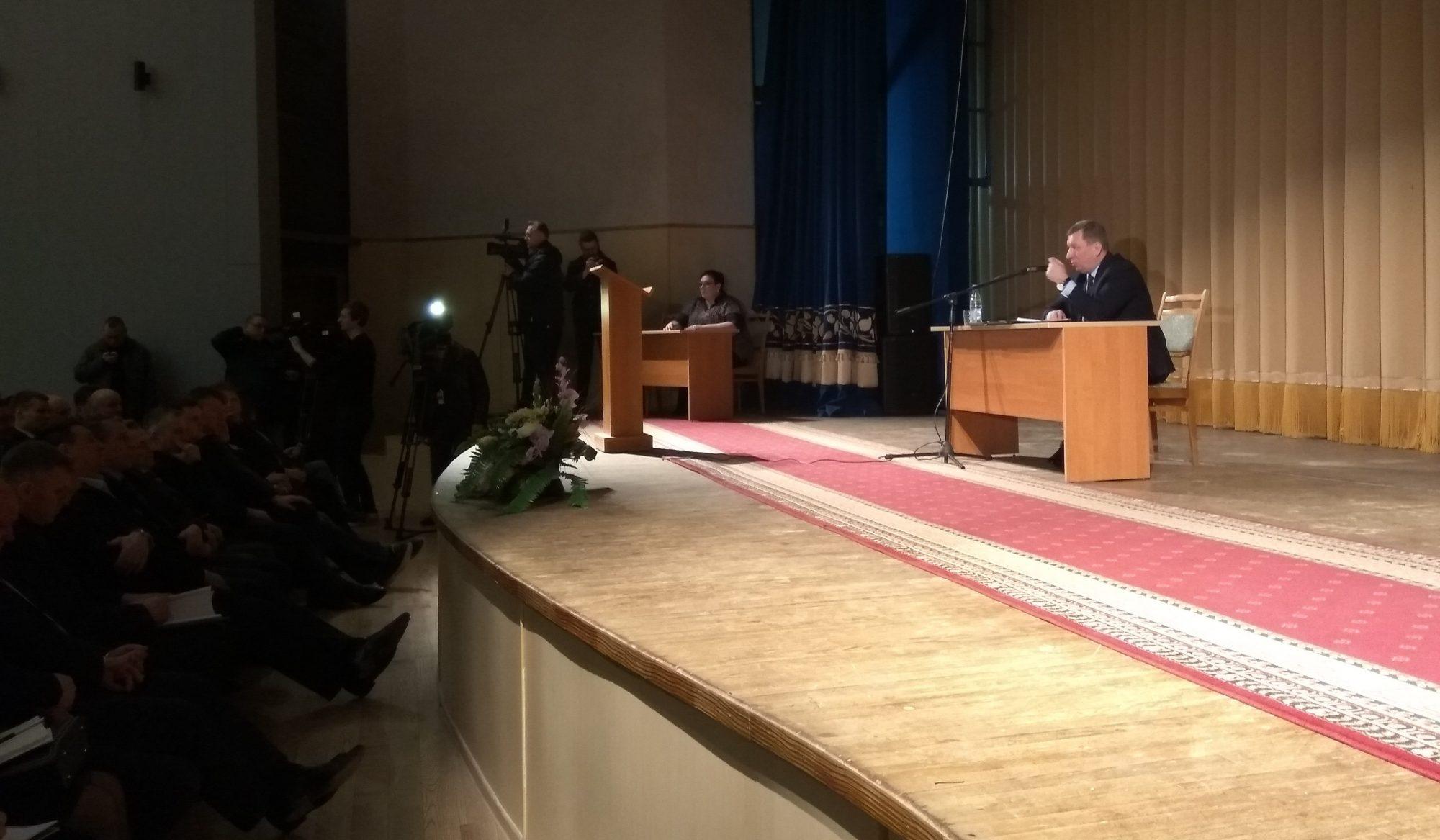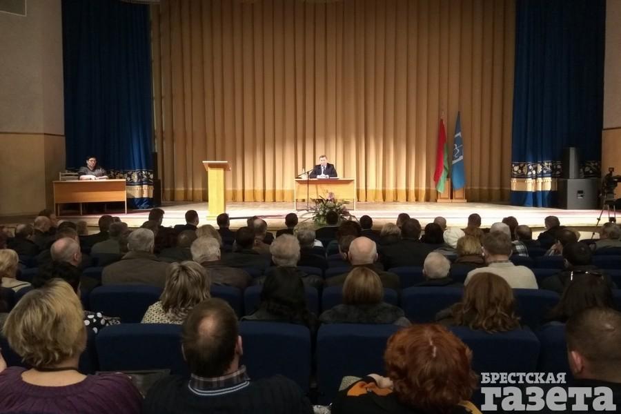 Встреча председателя Брестского горисполкома Александра Рогачука с брестчанами состоялась 25 марта во Дворце культуры профсоюзов. Горожане задавали вопросы о трудоустройстве, состоянии дорог и тротуаров, очистных сооружениях и т. д.