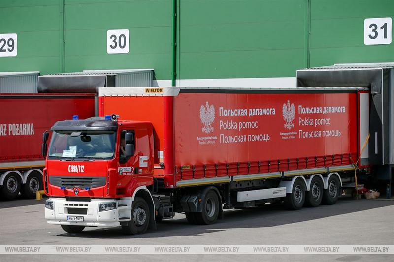 Караван из 40 грузовиков доставил 300 тонн груза для борьбы с эпидемией COVID-19. По информации БелТА, поляки передали белорусам дыхательную аппаратуру, лекарства, несколько миллионов защитных и медицинских масок одноразового использования, антисептическую жидкость, защитные халаты, комбинезоны биологической защиты, медицинские щитки, ПЦР-тесты.