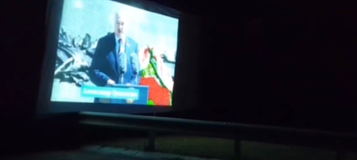 Между пограничниками Украины и Беларуси продолжается непрямой контакт при помощи билбордов. В этот раз украинская сторона установила огромный проектор в Житомирской области, где попыталась донести до коллег всю правду. То, что он показывает, хорошо видно и слышно в Беларуси. Об этом сообщает издание «Белсат» со ссылкой на видео, которое прислали читатели.