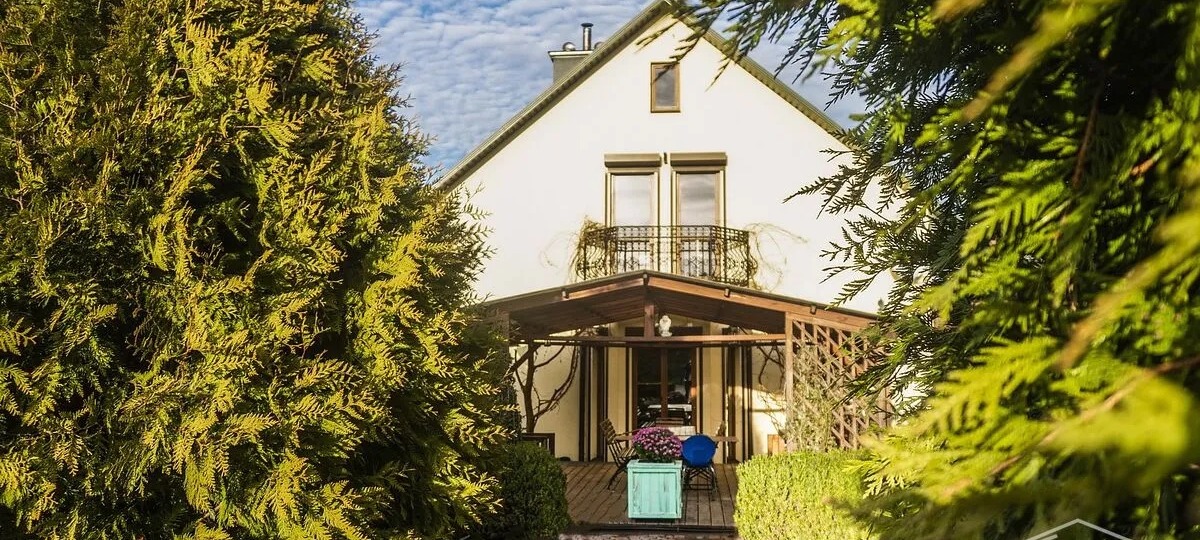 Дом находится в престижной застройке пригорода Бреста — деревне Литвины, пишут в объявлении. Коттедж построен с применением высокотехнологичных и современных материалов. Первое, что привлекает внимание, — частично застекленная уютная терраса с садовой мебелью и зелеными насаждениями.