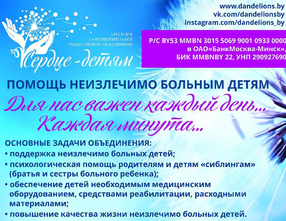 Объединение «Сердце — детям»: e—mail: heartforchildren@mail.ru, тел. (+37529) 818-07-59