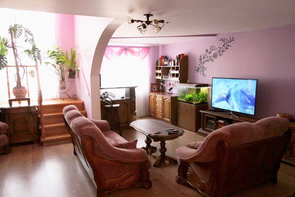 Квартиру – в кирпичной пятиэтажке 2009 года постройки. Находится на четвертом этаже. Из эркерных окон открывается панорамный обзор на центр Бреста. Продавец заявляет, что комнаты оформлен в стиле современной классики. Три спальни изолированы, а гостиная объединена с пространством кухни.