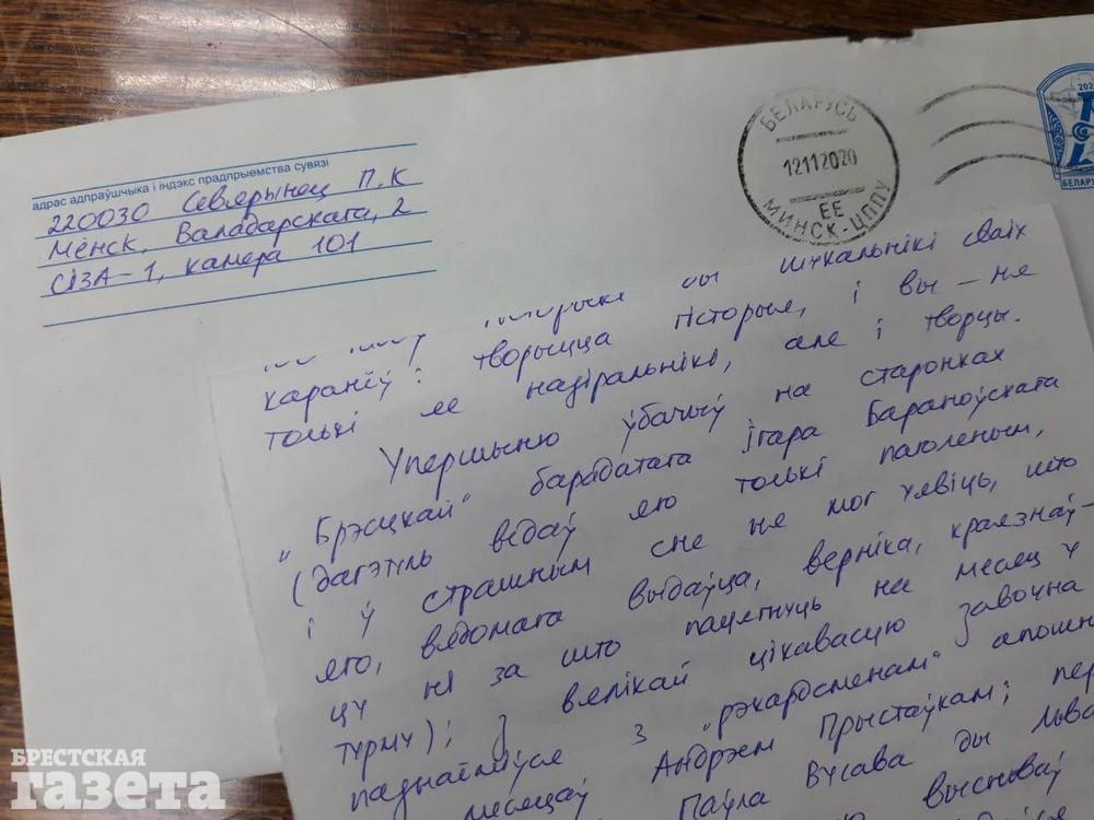 Павел Северинец благодарит нас за подписку на ноябрь и будет советовать тем, кто пишет ему из Брестской области, подписываться на «БГ». Удивила его борода Игоря Барановского, которая выросла за 30 суток ареста. Его фото после освобождения мы публиковали в №45.