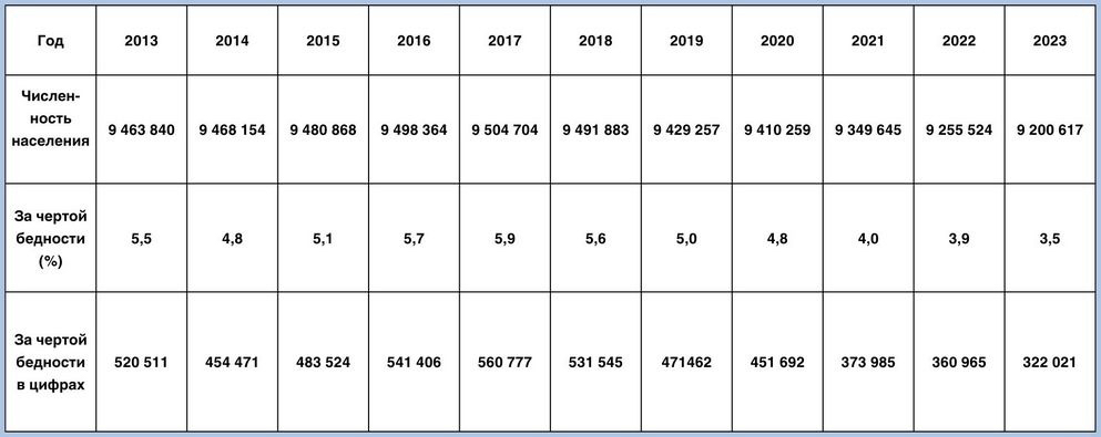 BGmedia решило посмотреть, как менялась эта статистика за последние 10 лет. Для этого мы изучили, численность населения Беларуси с 2013 года, а также данные Белстата. Исходя из этого определили число беларусов, находящихся за чертой бедности, начиная с 2013 года. Вот, что мы обнаружили.