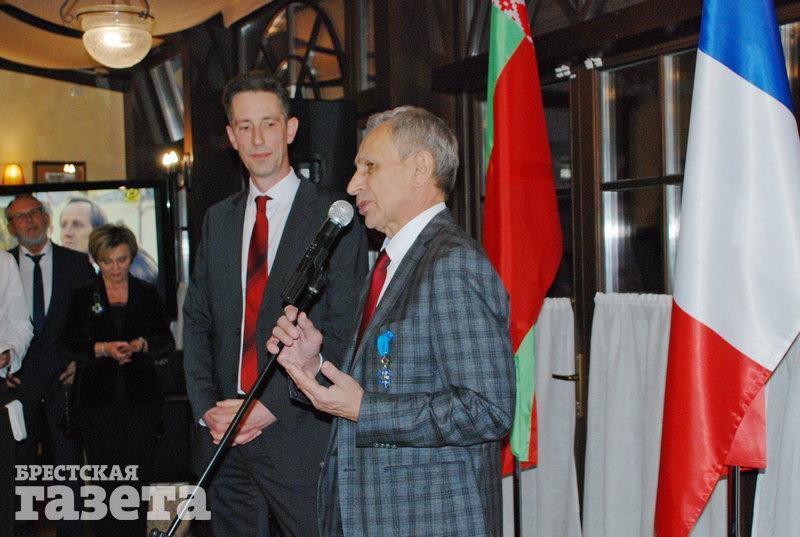 Государственную награду Французской Республики руководитель консульского агентства в Бресте Леонид Стаецкий получил из рук чрезвычайного и полномочного посла Франции в Беларуси Дидье Канесса.