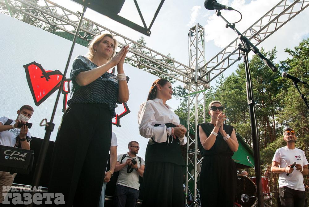 Около 15.30 Тихановская, Колесникова и Цепкало поднялись на летнюю сцену в Парке воинов-интернационалистов. Собравшиеся встретили их овациями. В такой эмоционально-восторженной атмосфере взаимопонимания и единодушия прошел весь митинг.